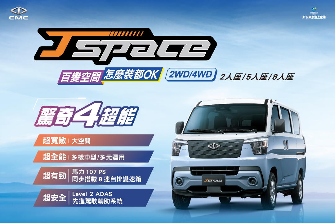 CMC J SPACE 是一款輕巧靈活的多功能用車,搭載8 速自排變速箱,即使在崎嶇的山路上駕駛,仍能保持流暢的駕駛感受。其寬敞的車室設計讓露營裝備可以輕鬆收納,並且配備LEVEL 2 ADAS 先進駕駛輔助系統,為駕駛者提供額外的安全保障。