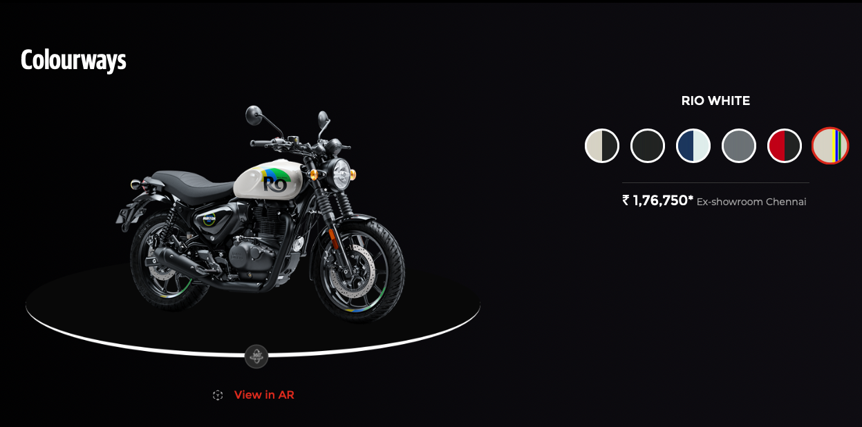 這款車在設備方面也不容小覷,配備了LED頭燈、與專用智慧手機應用程式連接的「Tripper」簡易導航系統,並搭載了USB Type-C接口,兼顧經典造型與現代科技。至於車輛的售價,在印度市場的建議售價為:Rio White:1,76,750 印度盧比(約新台幣 70,600元)、London Red 和 Tokyo Black:1,81,750 印度盧比(約新台幣 72,500元)。
