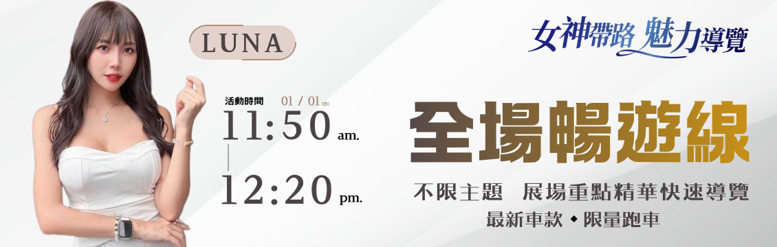 由魅力女神-LUNA帶隊,精選導覽動線,帶您快速掌握展場所有精華亮點,短時間內感受最豐富的內容,無論是車迷、家庭或首次參觀者,都能一次看遍全場重點,暢遊其中滿載而歸